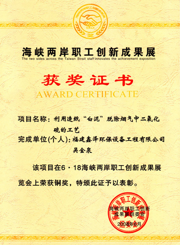【上一个】:海峡两岸职工创新成果展铜奖(铵基双碱法烟气脱硫工艺)
