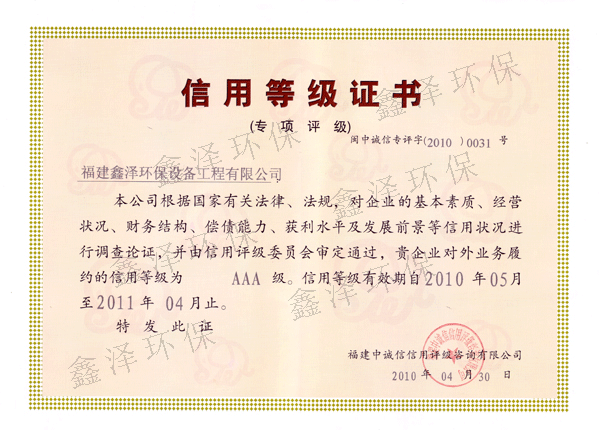 信用等级证书