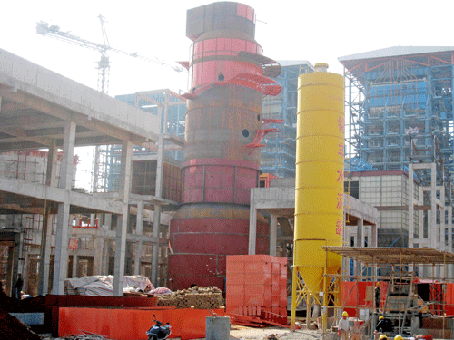 由我公司负责设计、承建的湛江晨鸣浆纸有限公司自备热电厂3×280t/h次高温次高压循环流化床锅炉烟气脱硫工程,为炉外湿式(造纸白泥-石膏法)脱硫,自2010年11月15日开工以来,经过40天的努力奋战,1#锅炉配套的脱硫塔于12月25日顺利封顶。 该脱硫塔主体直径10m~7.9m、全高30.28m,第一座脱硫塔建成,使工程施工取得了阶段性胜利!工程管理、进度、质量、安全均得到了业主及各方单位的认可和赞誉;该脱硫塔的进出口烟道也即将完工,计划于2011年1月底完成整体的内防腐、外保温及油漆工作。 2#脱硫塔于2010年12月底开工,预计2011年1月底主体封顶,工期更为紧张,需要进一步强化管理。在工程材料供应、施工质量严检、生产安全防范及外联工作等方面,都要高度重视、友好协调。为此,项目管理部全体成员将再接再厉,迎接挑战,为确保本工程全面顺利竣工而努力。